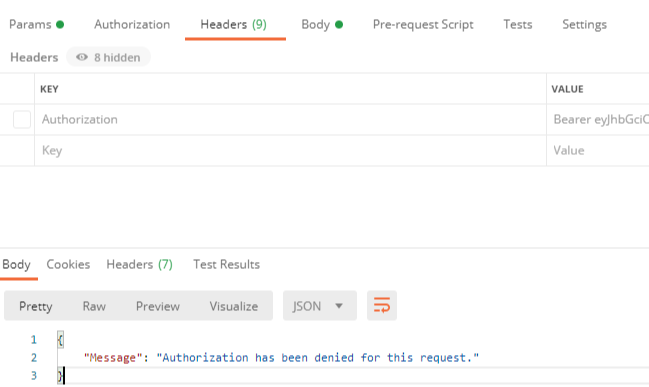 이때, 원래는 토큰 값 앞에 "Bearer"라는 값을 넣어줘야 하지만, 우리가 선택한 것은 Bearer Token이기 때문에 넣어주지 않아도 된다.